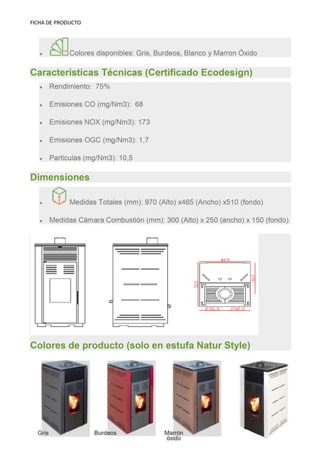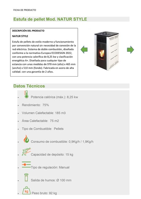 - Potencia Calórica 8,25 kW, regulable por tiro manual